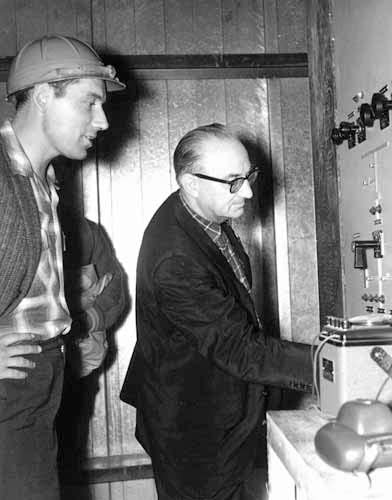 | Joey Smallwood, the Premier of Newfoundland, officially opened the Twin Falls Station on 21 July 1963. In his speech, he said, "It gives me real pleasure that Newfoundlanders can show those mainlanders how to build a hydro-generating station" and after a debate about cutting a ribbon, which Joey declined, we had him synchronize and connect a generator to the transmission line. After all, what a liveyere of Labrador can do a premier of a province can surely repeat. | ||||||||||||||||||||||||||||||