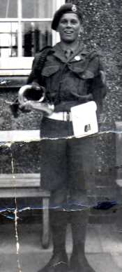 Frank Hartry (1946-1951) in 1949 in battledress jacket, collar and tie, wearing a khaki beret |