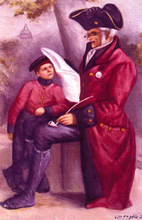 This postcard combining Philip Morris's 1880 Sons of the Brave painting with an artist's image of boys of the RMA that appeared a 19th century issue of the London Sketch. Artist Peter Goble created this postcard to celebrate the centenary of the Duke of York's Old Boys Association.